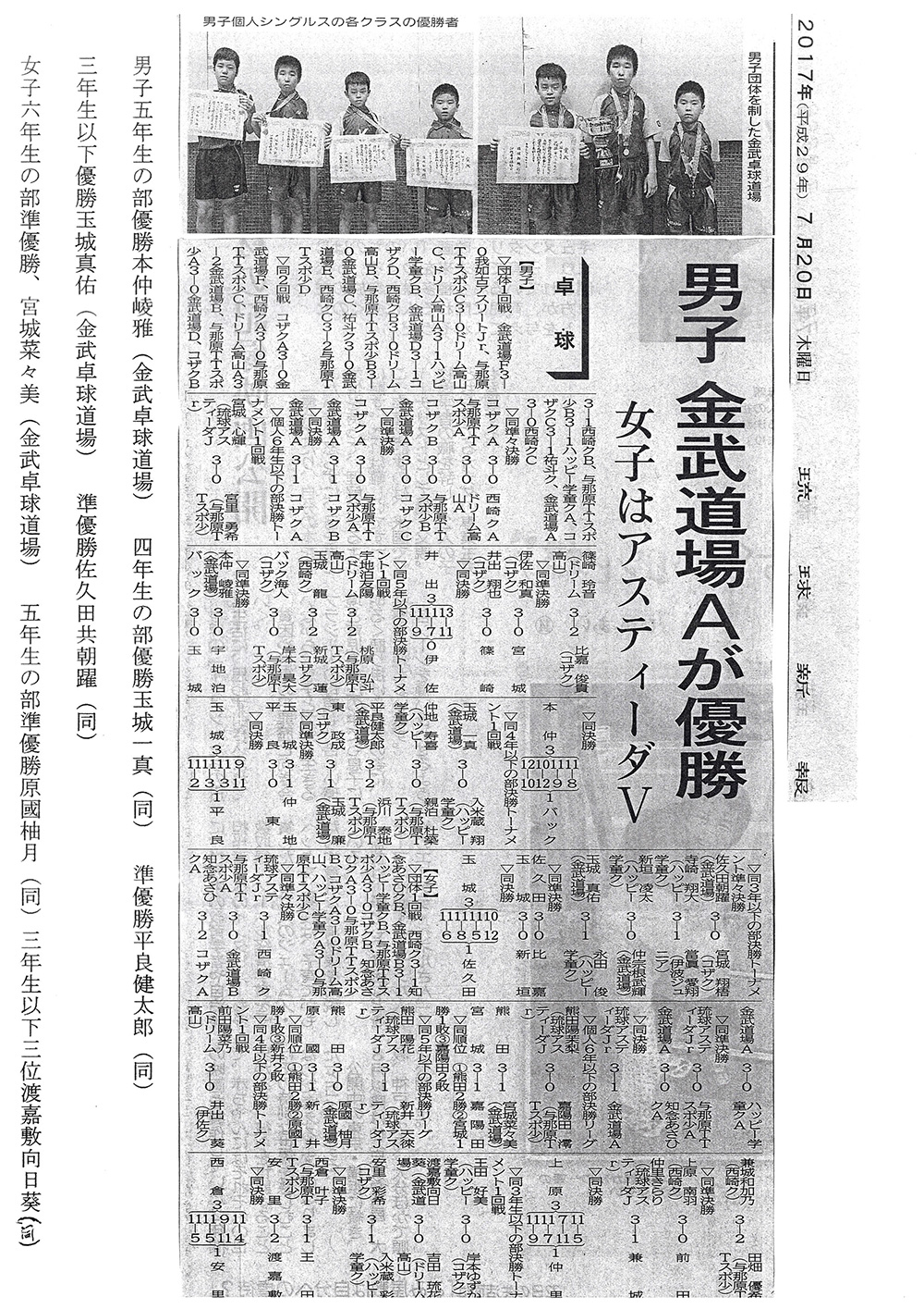 金武卓球道場は男子低学年団体優勝、低学年個人優勝、高学年団体準優勝 |