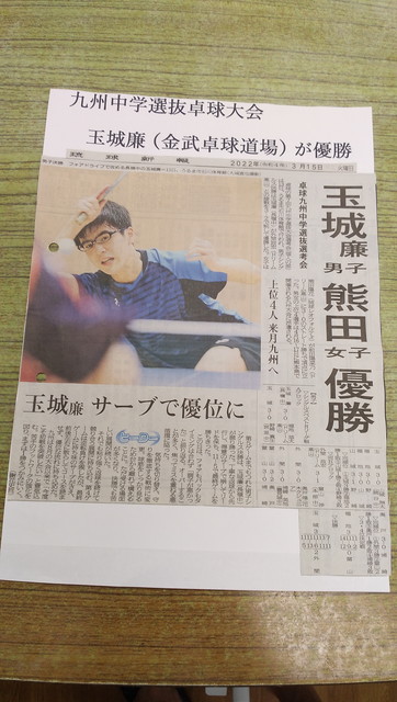 第19回全九州卓球選手権中学生の部県予選 |