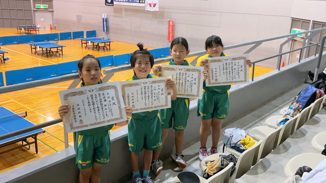 期日:2025年8月13日 会場:那覇市民体育館 女子シングルス四年生の部で神谷夕夏(金武卓球道場)が優勝 <女子シングルス三年生以下> 三位 島袋ひかり(金武卓球道場) <女子シングルス四年生以下> 優勝 神谷夕夏(金武卓球道場) 三位 親川幸奈(金武卓球道場) <女子シングルス五年生以下> 三位 東恩納利亜(金武卓球道場) <女子団体戦> 三位 金武卓球道場A(親川ゆづき・神谷夕夏・親川幸奈) 三位 金武卓球道場B(神里優彩・東恩納利亜・具志堅陽奏・森本光)
