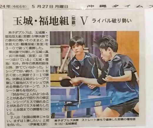 道場所属の玉城廉・福地悠太が男子ダブルス優勝! 男子シングルスは玉城廉準優勝、真栄里心大六位